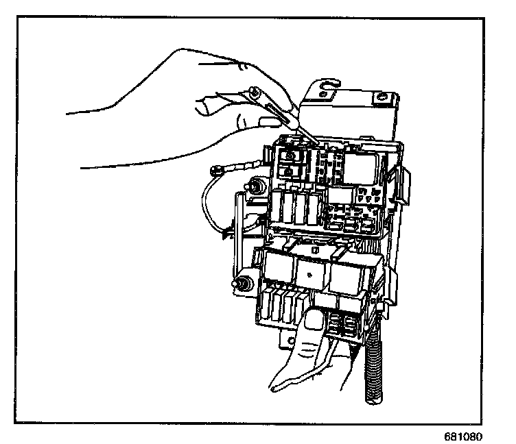 15. Release the clip retainers from the underhood fuse block(s) battery cable and buss bar terminals using a small flat-bladed tool.