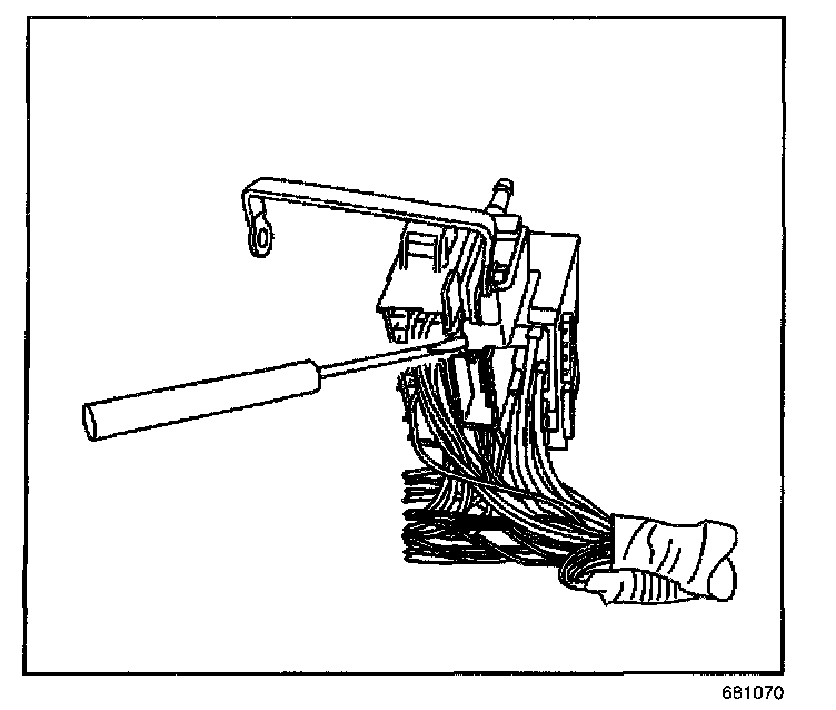 13. Remove the buss bar(s) from the fuse block(s) using a termini releasing tool, and pulling down and out on the buss bar.