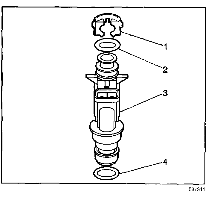 5. Remove the fuel injector lower O-ring (4).