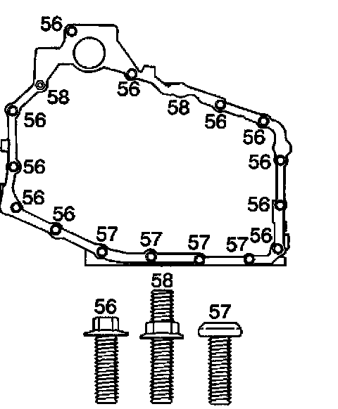 ^ Tighten the case side cover bolts (56-58) to 25 Nm (18 ft. lbs.).