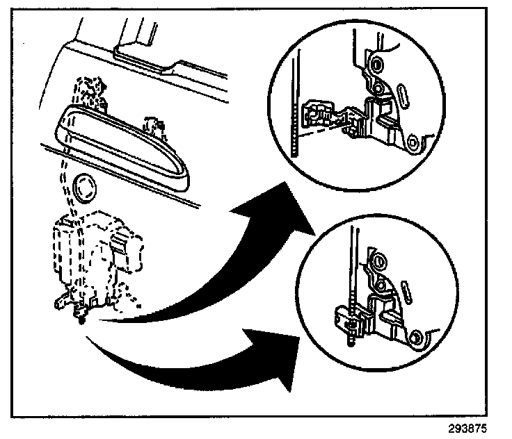 6. Position the outside door handle rod in the clip in order to eliminate any free play in the outside door handle.