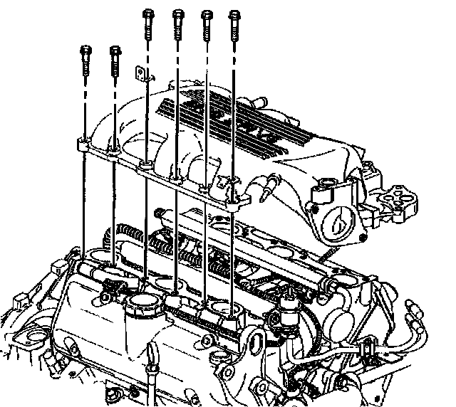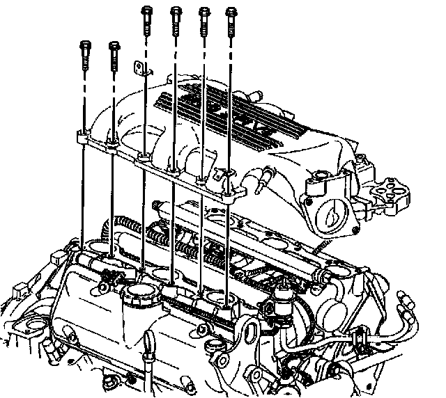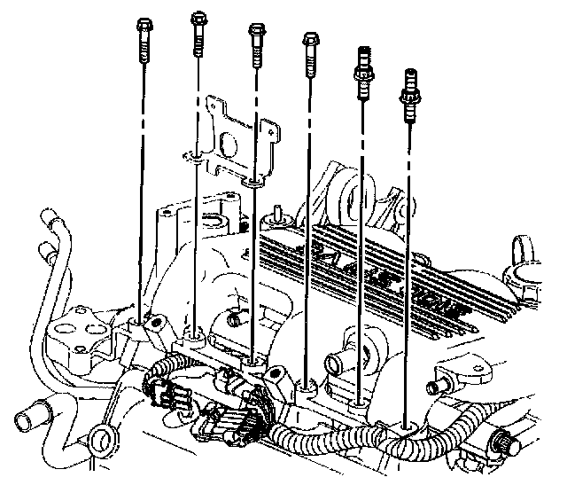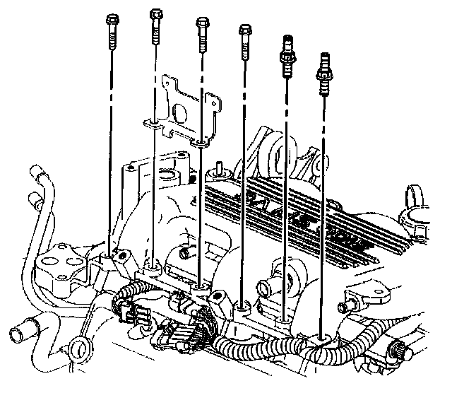 5. Loosely install the right hand upper intake manifold bolts and studs.