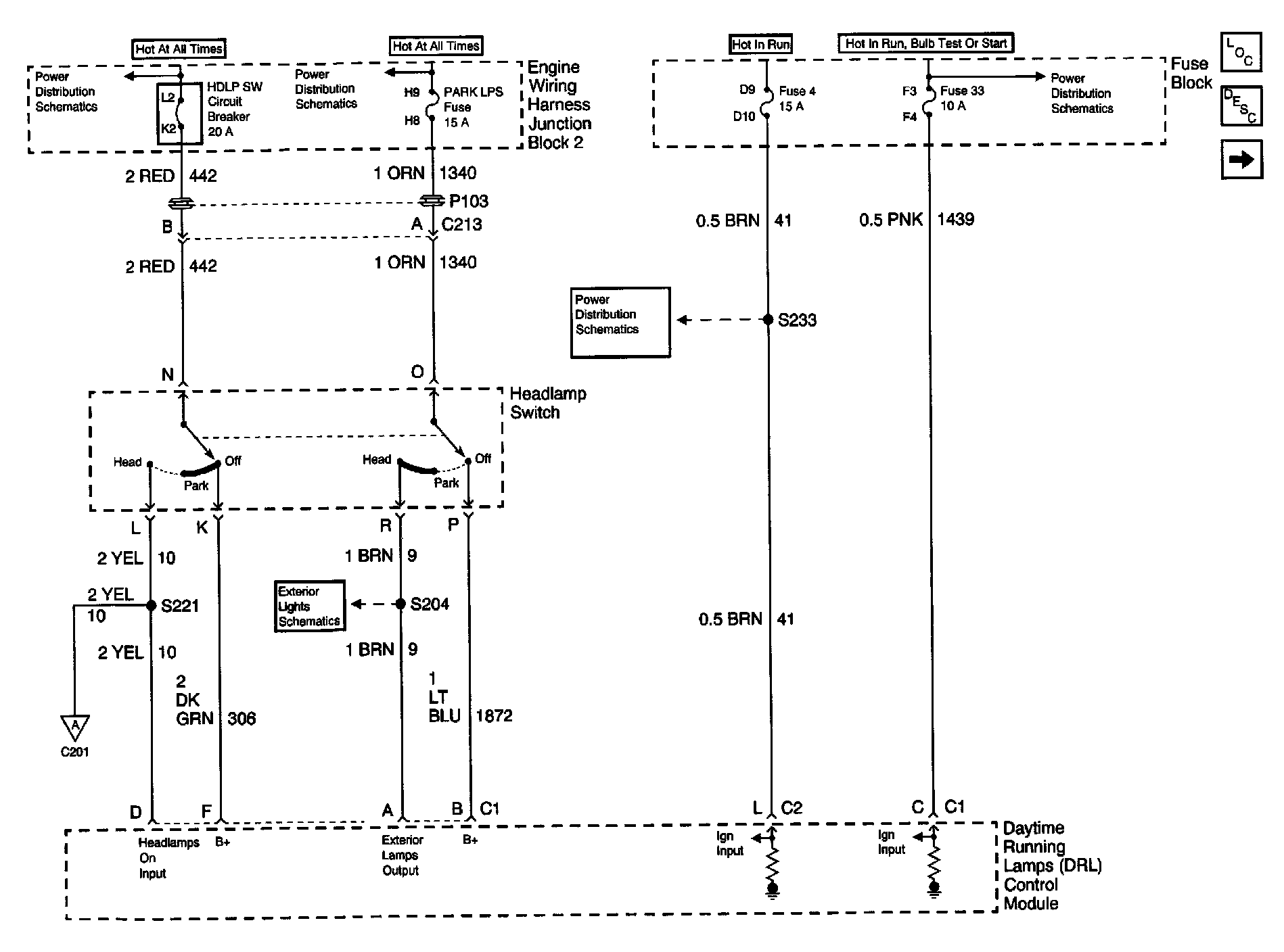 Headlights Schematics: Fuse Distribution Headlamp Switch And DRL Control Module: