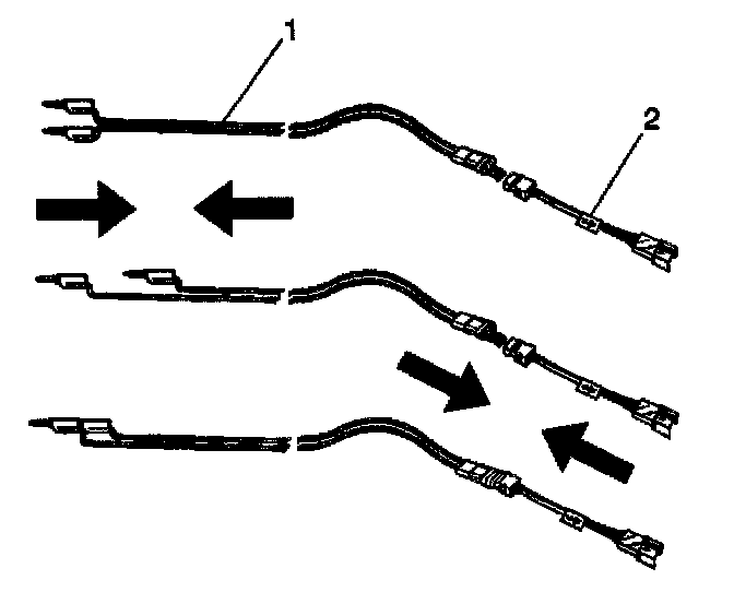 6. Connect the appropriate pigtail adapter (2) to the SIR deployment harness (1).