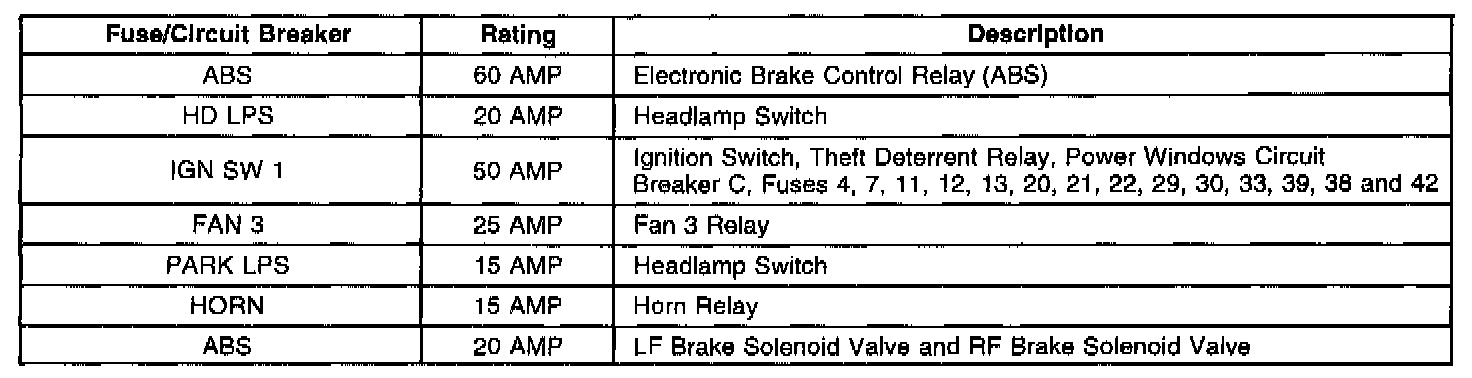 Engine Wiring Harness Junction Block 2 Fuse Application Table: