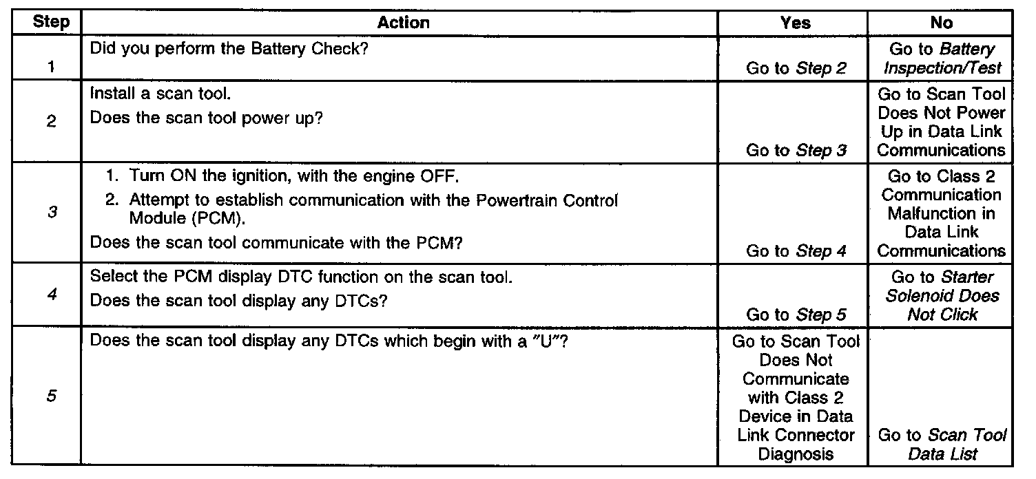 3. Lack of communication may be due to a partial malfunction of the serial data circuit or due to a total malfunction of the serial data circuit. The specified procedure will determine the particular condition.