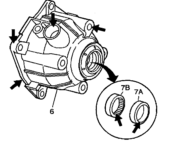6. Remove the case extension housing bolts (5).