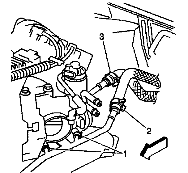 13. Remove inlet and outlet hoses from throttle body (1).