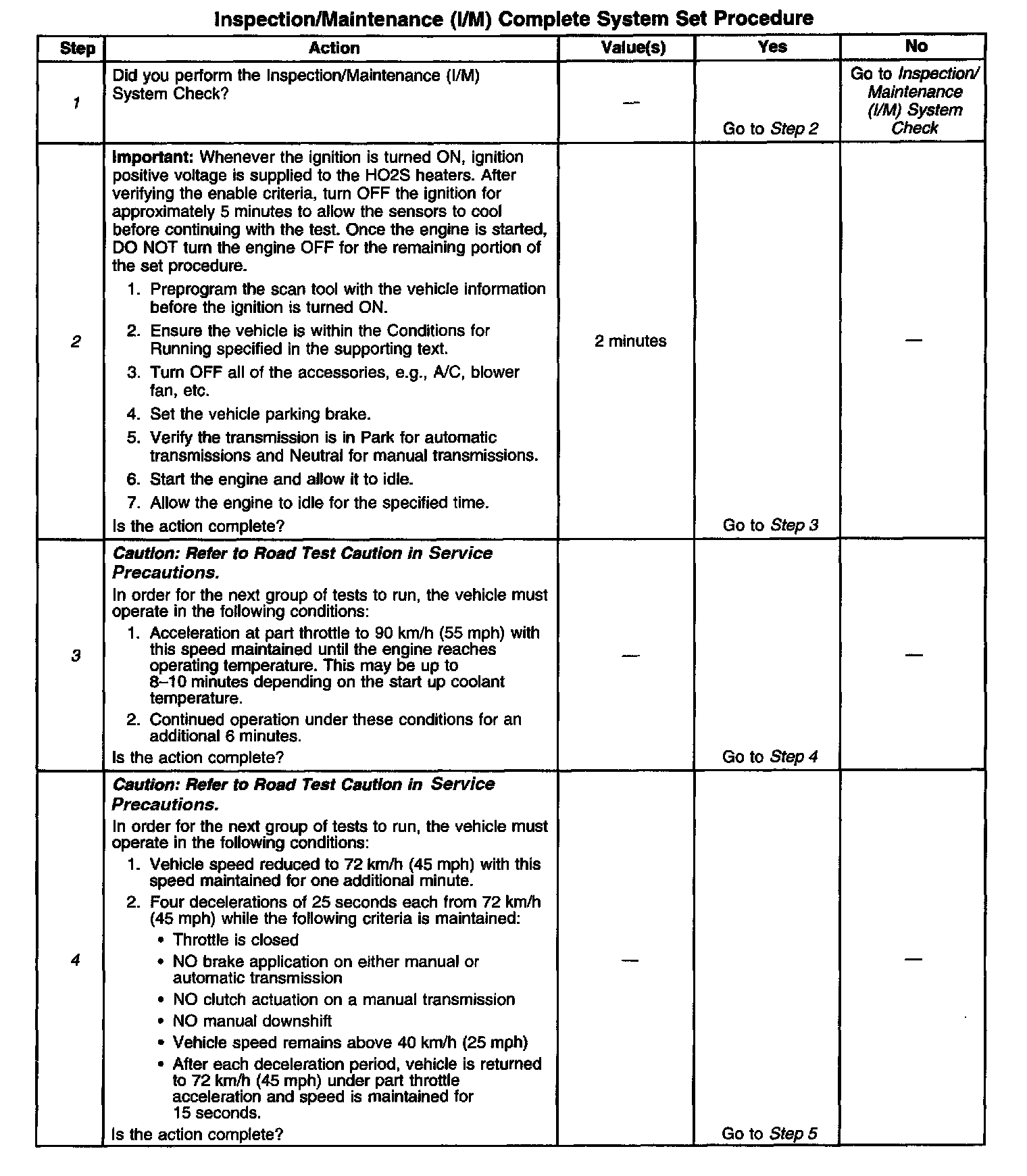 Inspection/Maitenance (I/M) Complete System Set Procedure