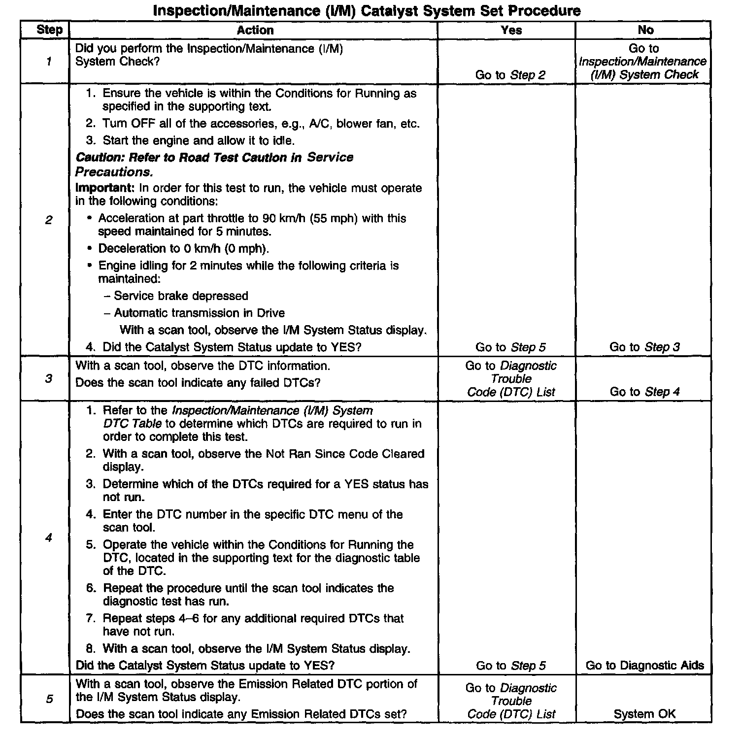 1. Make sure you perform the I/M System Check before performing this test. Failure to do so may result in difficulty updating the status to YES. Inspection/Maintenance (I/M) System Check