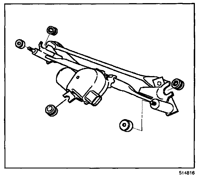 3. Install the 3 grommets and the 2 caps on the wiper transmission.
