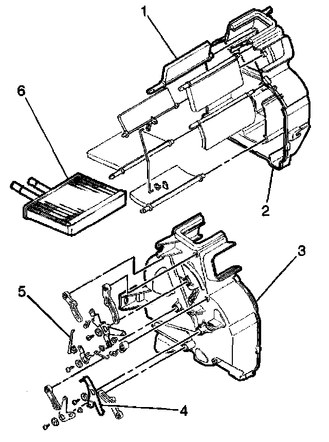 6. Remove the heater case retaining clips and the 2 screws (1) from the heater case.