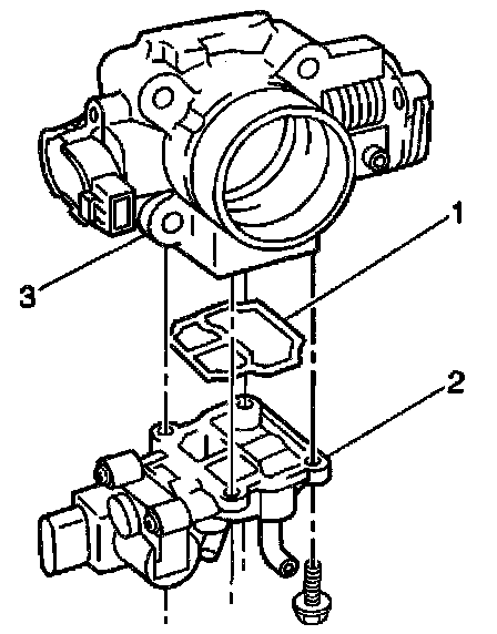 1. Install a new rubber gasket (1) onto the throttle body (3).