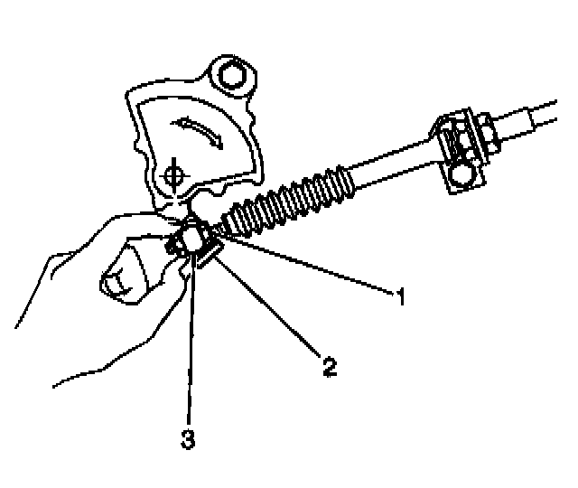 4. With your hand, adjust the adjustment nut (3) until the nut contacts the joint of the manual shift select cable.