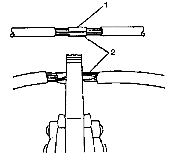 ^ Ensure that each splice is at least 40 mm (1.5 in) away from other splices, harness branches and connectors. This helps prevent moisture from bridging adjacent splices and causing damage.