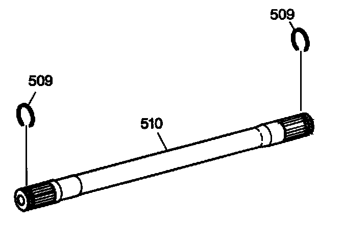 1. Install the drive axle retainer ring (509) and the output shaft differential inboard snap ring (512) onto the output shaft (510).