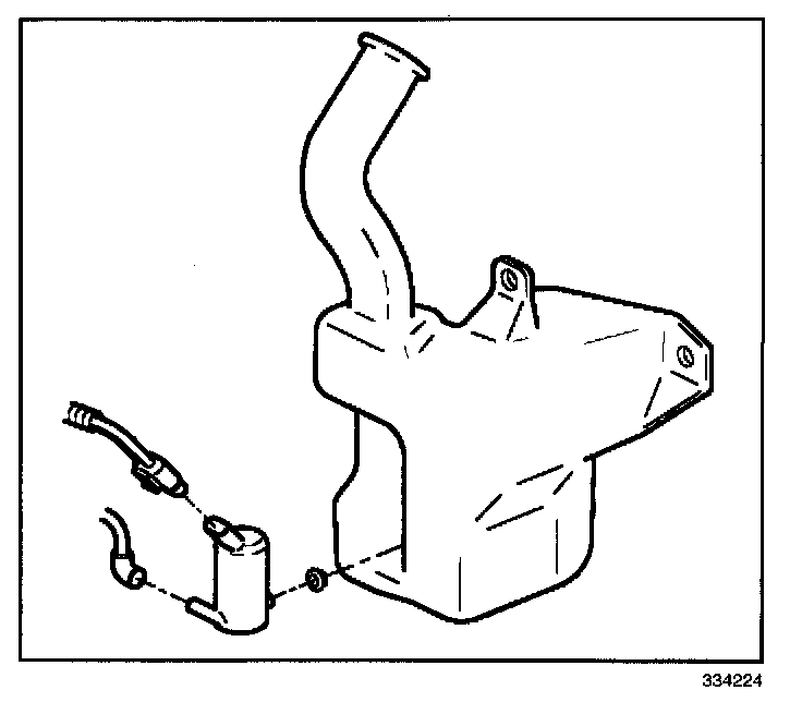 2. Disconnect the electrical connector and the hose from the washer pump.