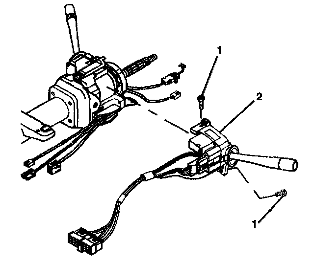 10. Remove the retaining bolts (1) from the multifunction turn signal lever (2).