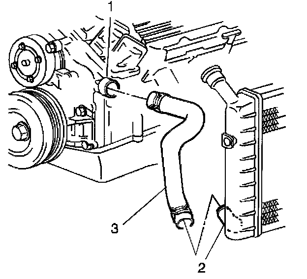 7. Remove the radiator outlet hose (3) from the radiator and the vehicle.