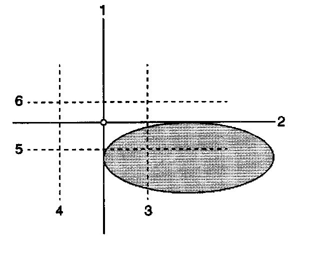 4. Locate the vertical line (4) on the aiming screen so that the vertical lines meets the following criteria: