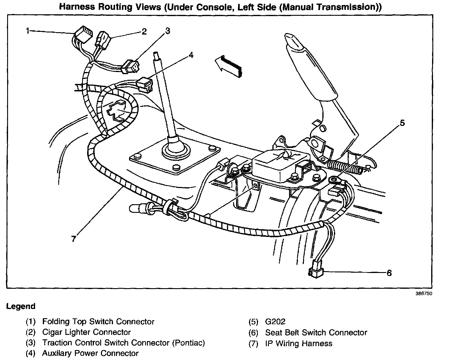 Harness Routing Views (Under Console, Left Side (Manual Transmission)):