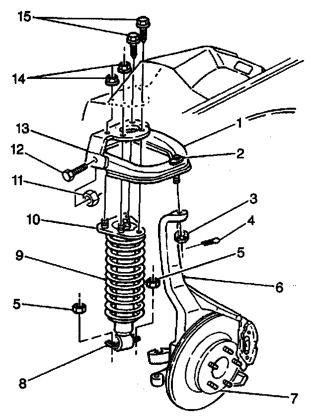 13. Separate the shock absorber (8) from the upper control arm (1).