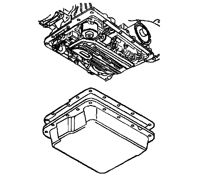 15. Clean the transmission case and the oil pan gasket surfaces with solvent, and air dry. You must remove all traces of the old gasket material.