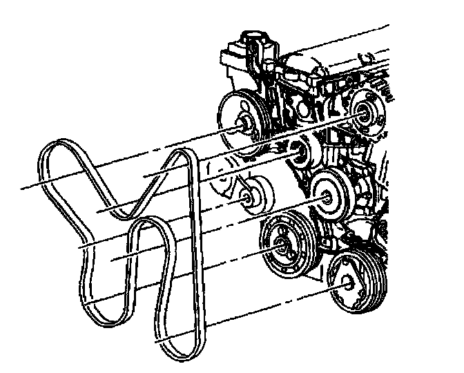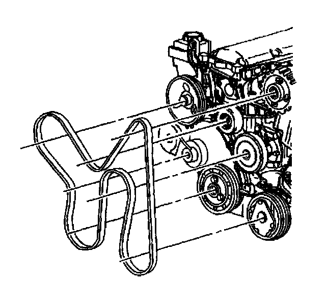 Important: Make sure that the drive belt is aligned into the proper grooves of the accessory drive belt pulleys.