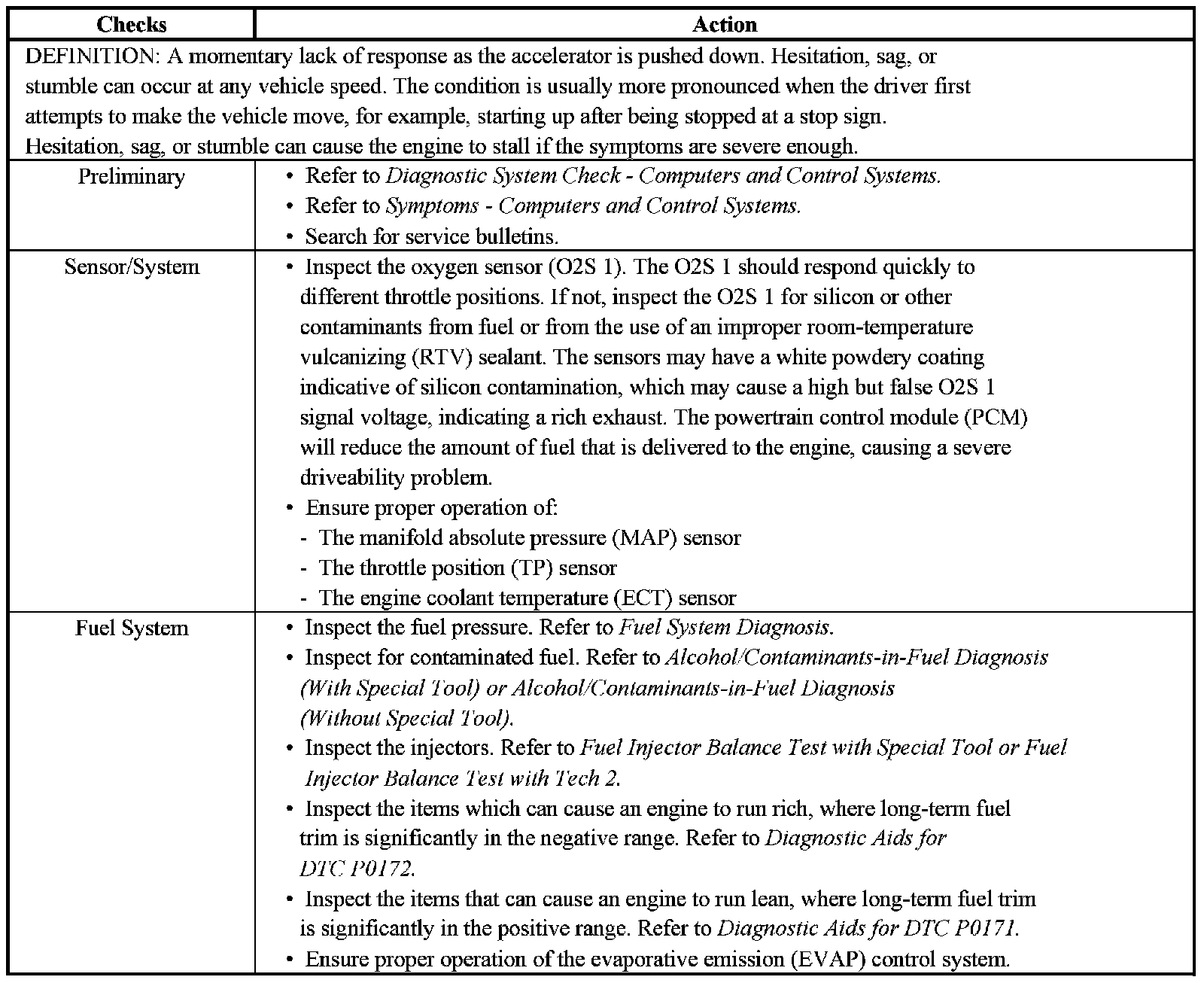Hesitation, Sag or Stumble