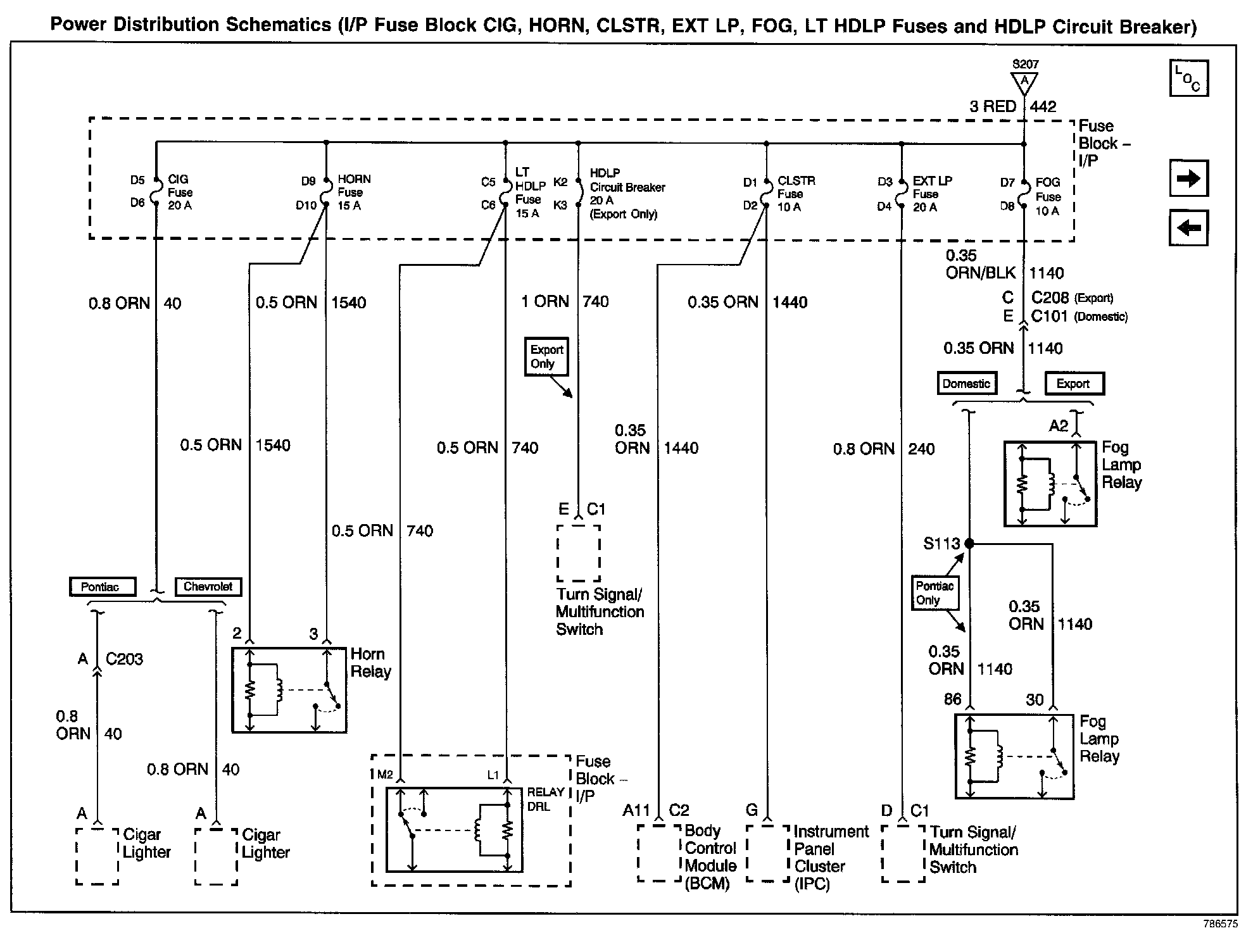 Power Distribution Schematics: I/P Fuse Block CIG, HORN, CLSTR, EXT LP, FOG, LT HDLP Fuses And HDLP Circuit Breaker: