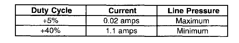 When vehicle operating conditions are appropriate to apply the TCC, the PCM immediately increases the duty cycle to approximately 42 percent. The PCM then ramps the duty cycle up to approximately 90 percent to achieve full TCC apply pressure. The rate at which the PCM increases the duty cycle controls the TCC apply. Similarly, the PCM also ramps down the TCC solenoid duty cycle to control the TCC release.