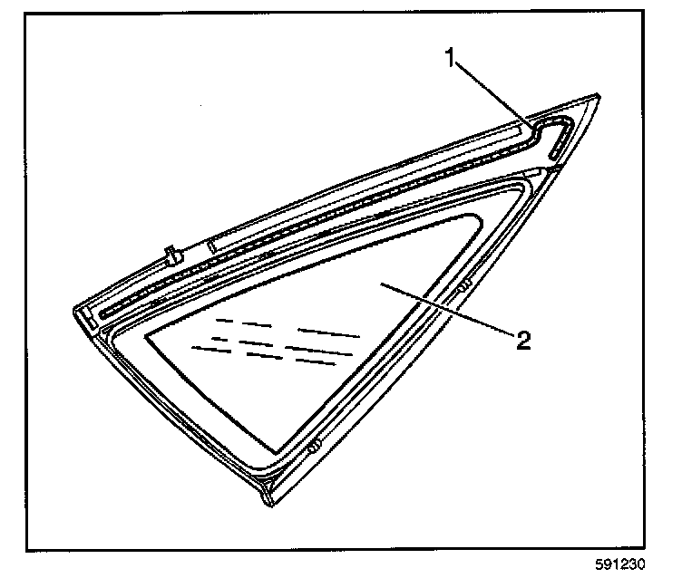 5. Remove the window (2) from the vehicle with the aid of an assistant.