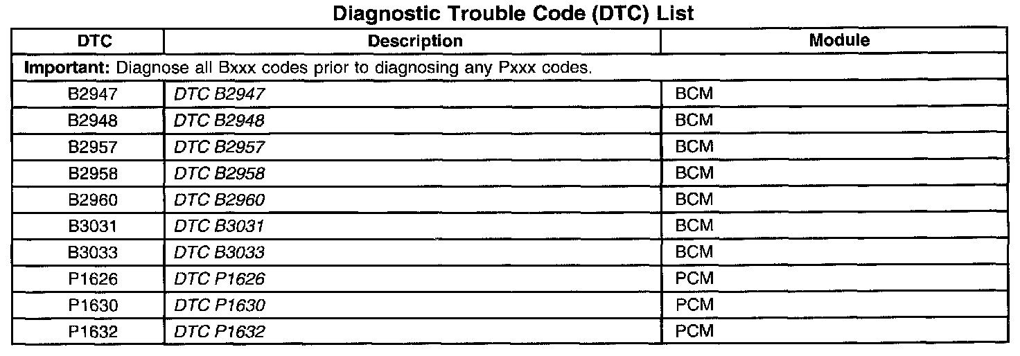 Diagnostic Trouble Code Descriptions