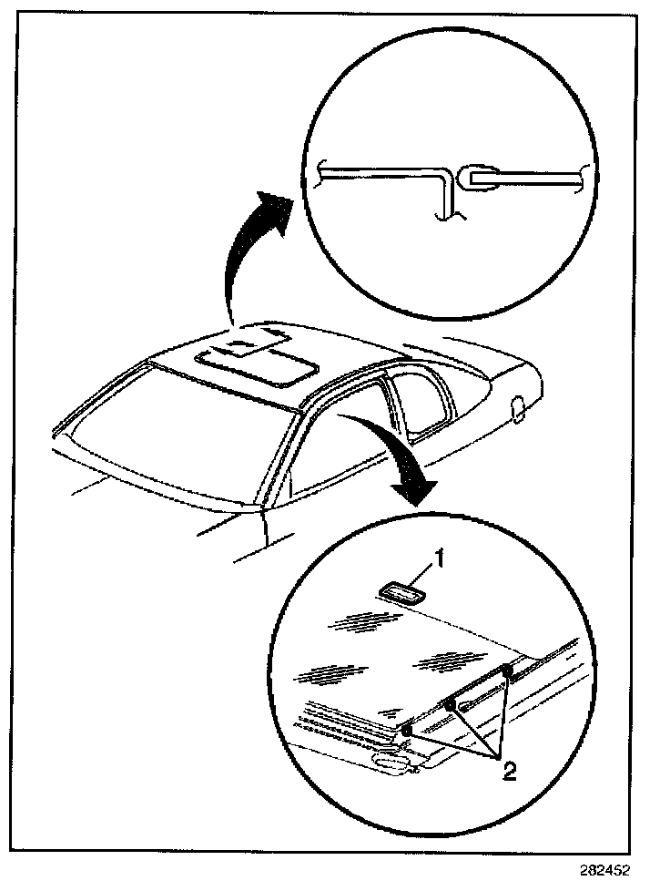 1. Install the sunroof window into the root opening with the sunroof logo facing rearward.