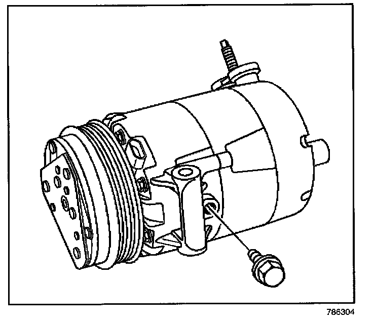 ^ If the amount of old oil drained is less than or equal to 75 ml (2.5 oz), add 75 ml of new oil into the new compressor through the crankcase bolt hole.