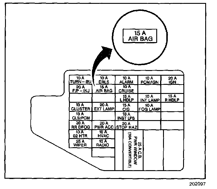 IMPORTANT: With the AIR BAG Fuse removed and the ignition switch in the RUN position, the AIR BAG warning lamp illuminates. This is a normal operation and does not indicate an SIR system malfunction.