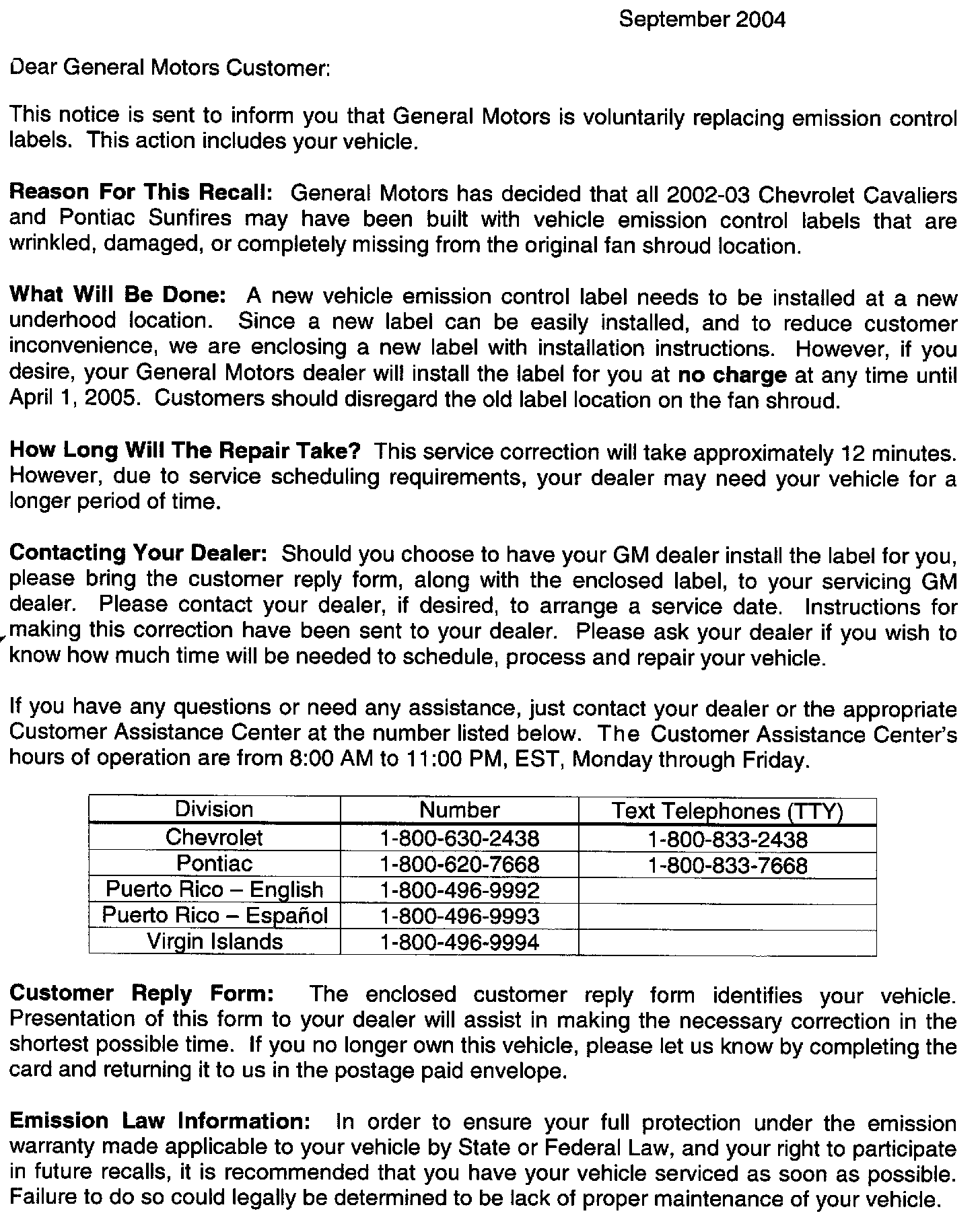 Recall - Emissions Label Replacement