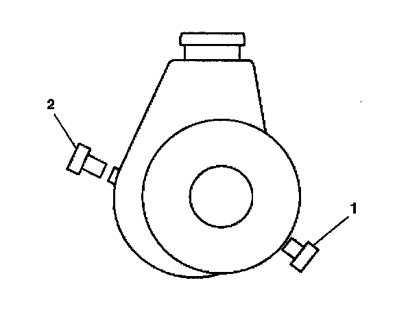 2. Install the plugs (1,2) supplied with the J43485 into the pressure and return port.
