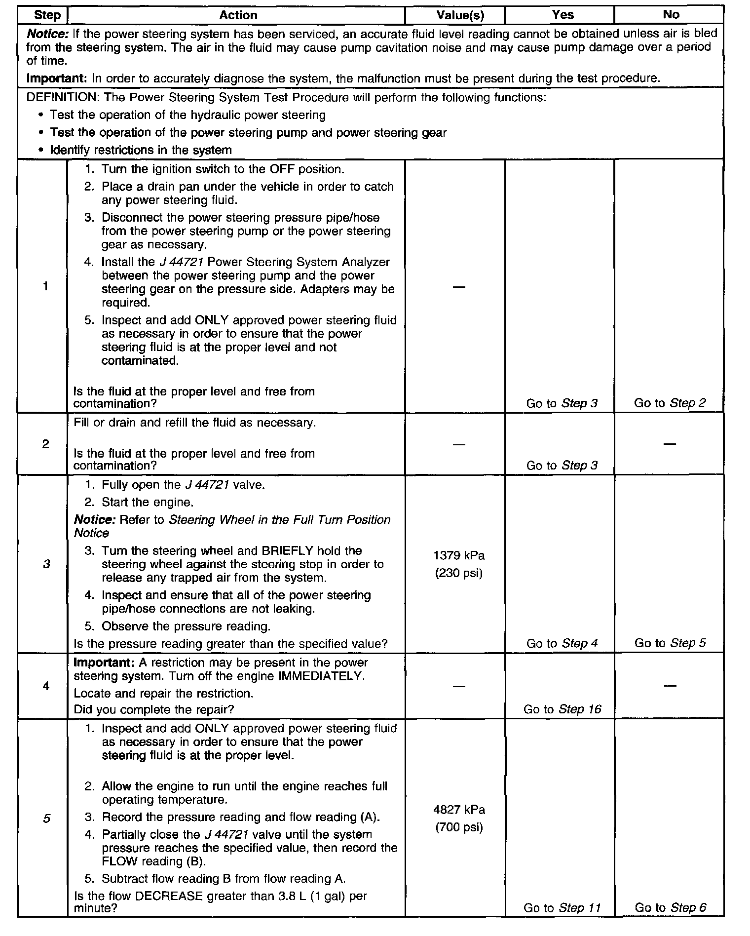 Power Steering System Test Procedure