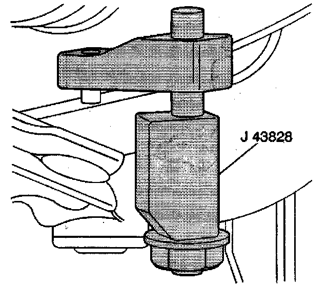 7. Separate the ball joint stud from the steering knuckle using the J43828.