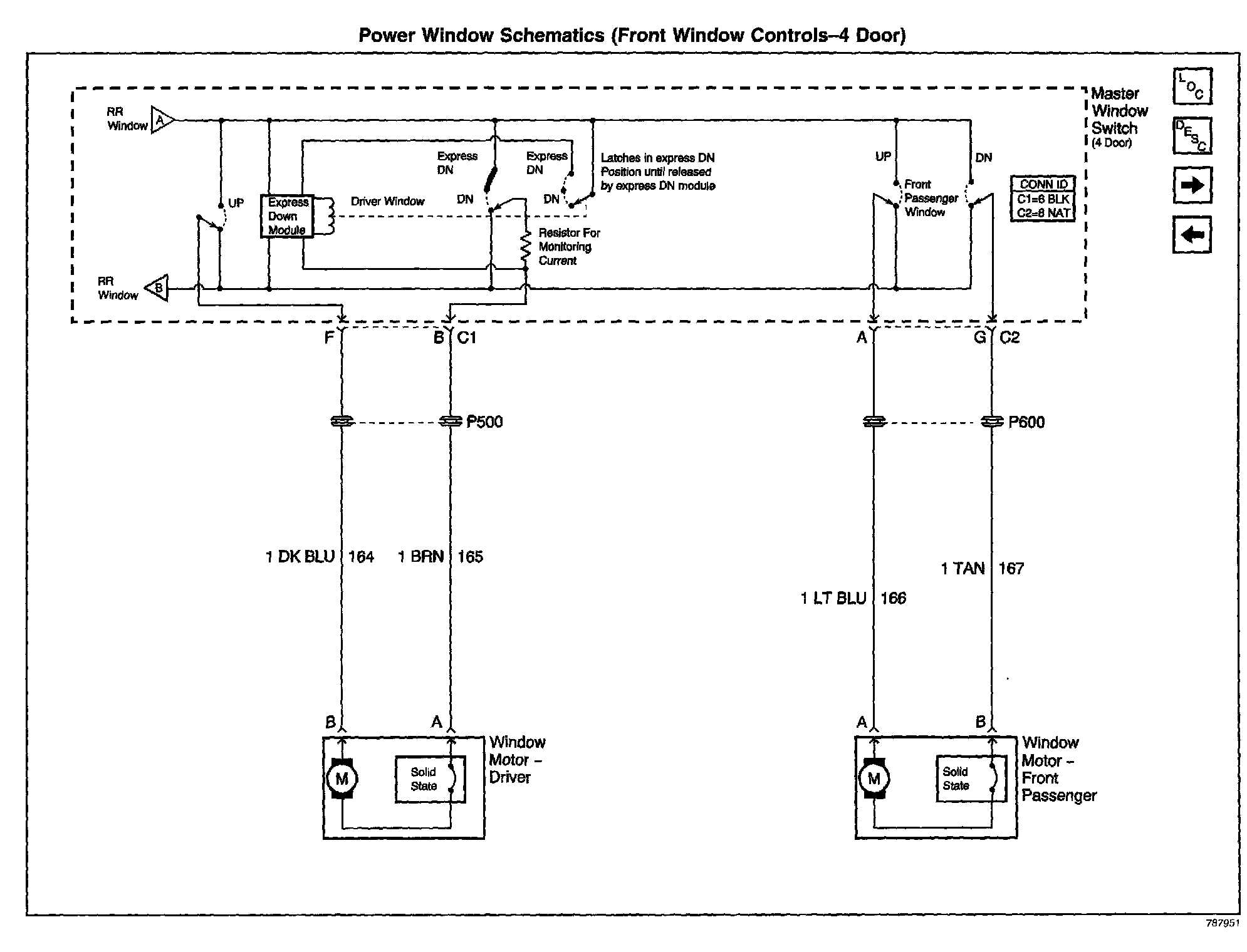 Power Window Schematics: Front Window Controls-4 Door: