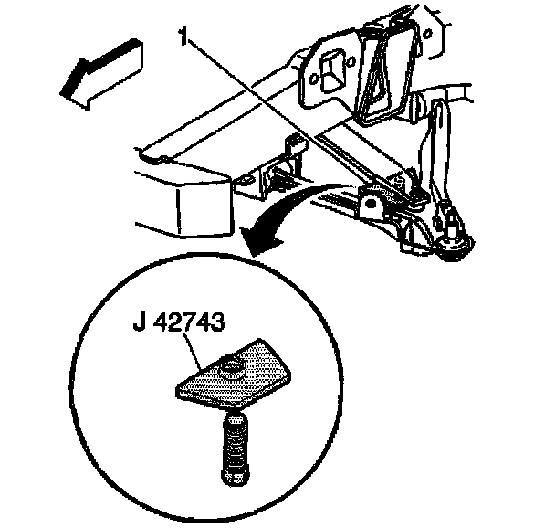 Important: When adjusting the spring adjuster bolt, J 42743 must be used in order to prevent damage to the rubber shear pad on the end of the bolt. One complete turn of the spring adjuster bolt is equal to 2 mm (5/64 inch).