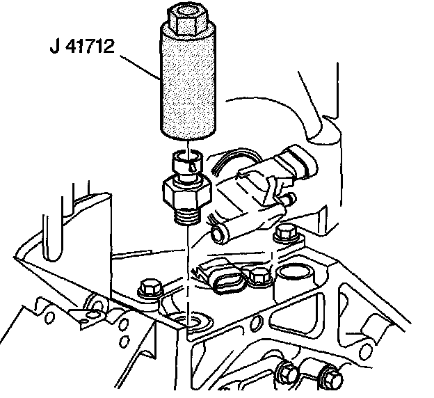 2. Use J41712 to install the oil pressure sensor to the engine block.