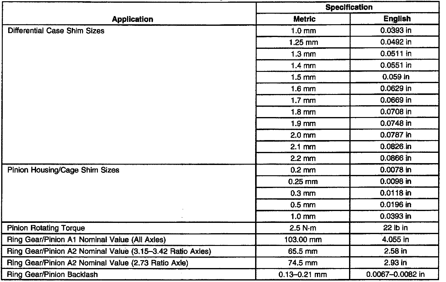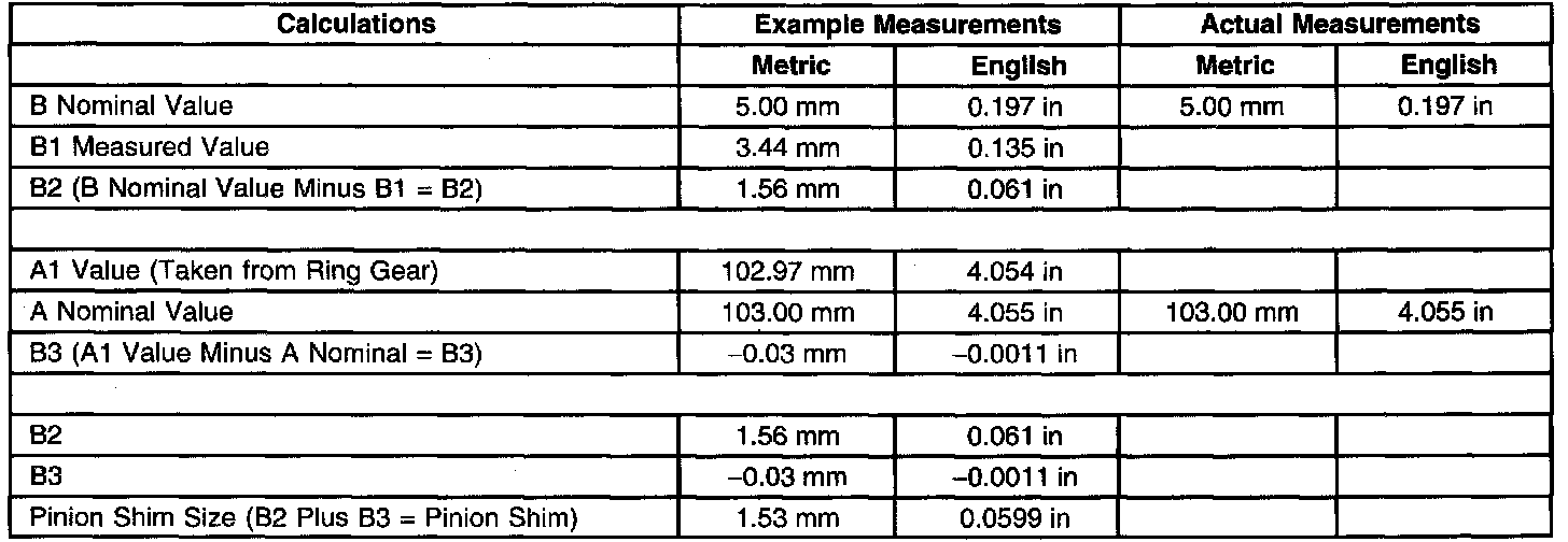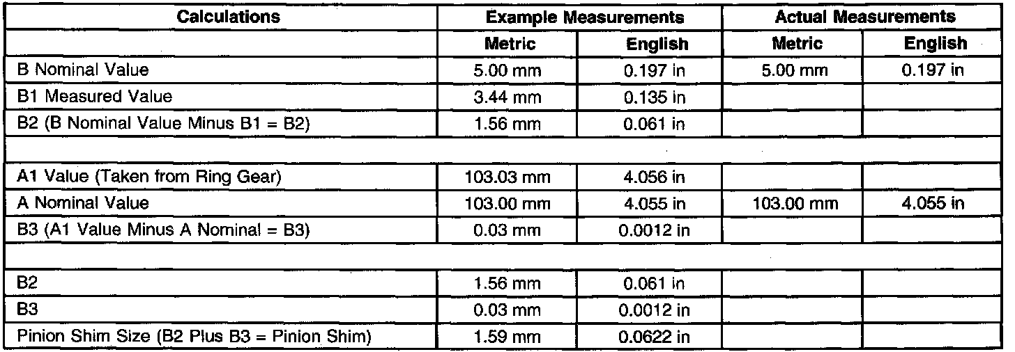 Pinion Shim Calculation Table with an A1 Value Less Than 103.00 mm (4.055 inch) All Axle Ratios