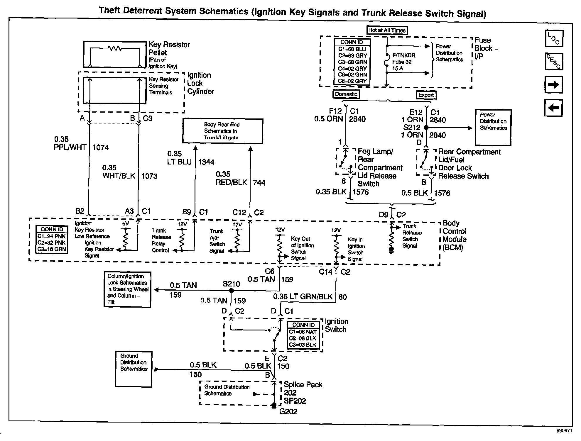 Theft Deterrent System Schematics: Ignition Key Signals And Trunk Release Switch Signal: