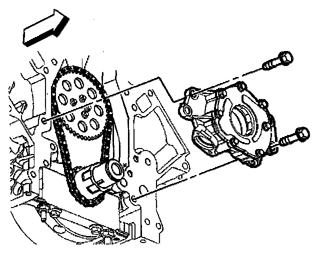 2. Install the oil pump onto the crankshaft sprocket until the pump housing contacts the face of the engine block.
