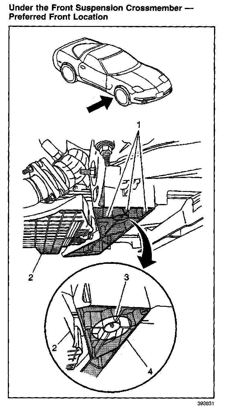 Under The Front Suspension Crossmember - Preferred Front Location: