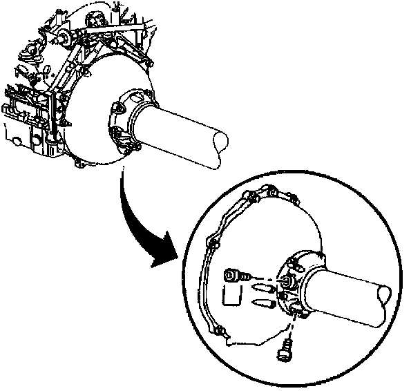 51. Remove the five driveline support assembly to engine flywheel housing bolts.