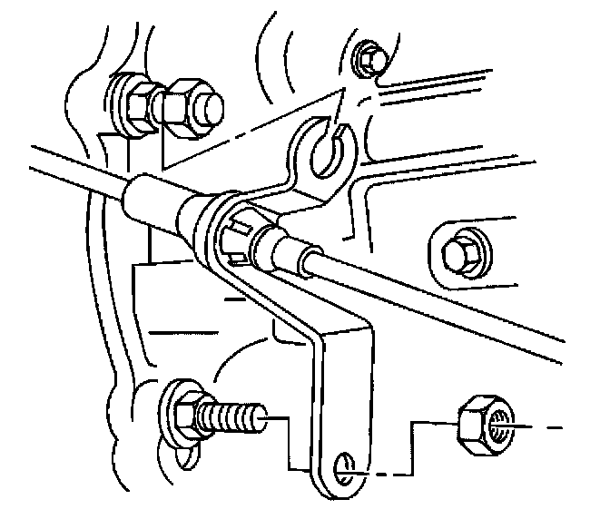 15. Remove the nuts retaining the transmission shift cable bracket to the transmission.