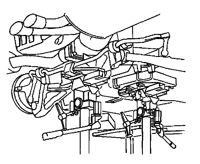 31. Position a transmission jack under the rear suspension crossmember and firmly secure the crossmember to the jack.